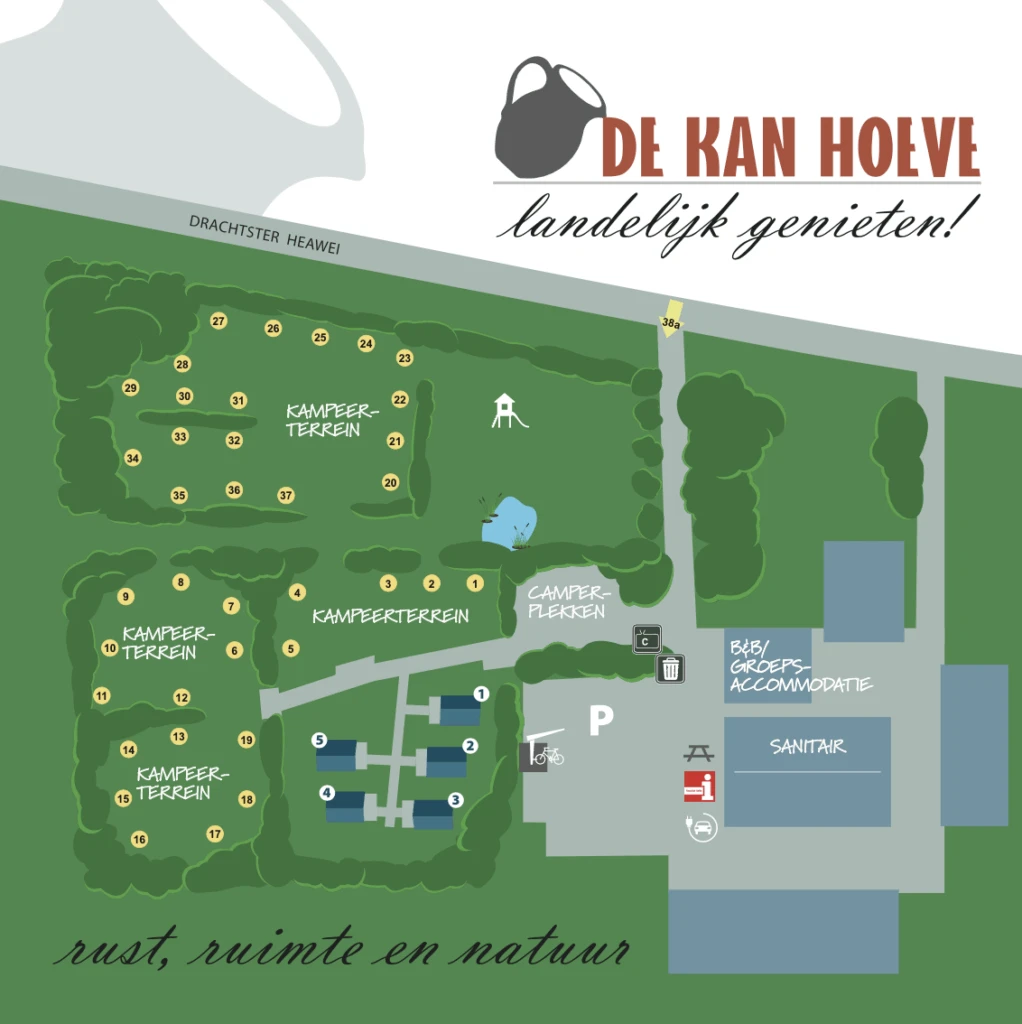 Het idyllisch kampeerterrein van ‘De Kan Hoeve Recreatie en accommodaties’ is in 2015 gerealiseerd door de huidige eigenaar. Na staken van het agrarische bedrijf is de camping opgezet. De prachtige minicamping is de perfecte uitvalsbasis voor watersportliefhebbers, wandelaars en fietsers. Totaal zijn er 35 ruime toeristische kampeerplaatsen aanwezig, inclusief 4 verharde camperplaatsen. De kampeerplaatsen zijn geschikt voor campers, tenten, auto’s/bus met daktenten en caravans. Elke kampeerplaats beschikt ...