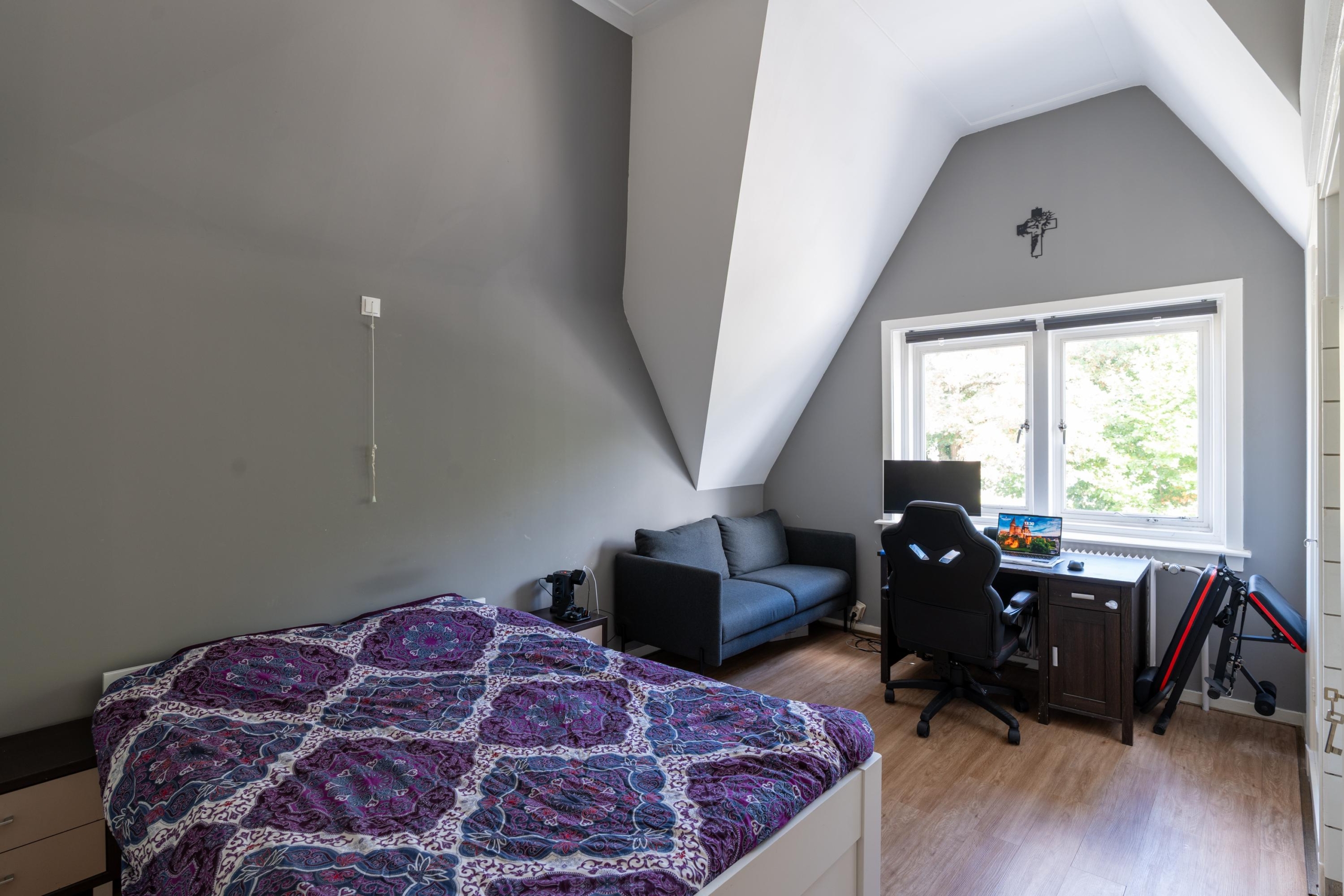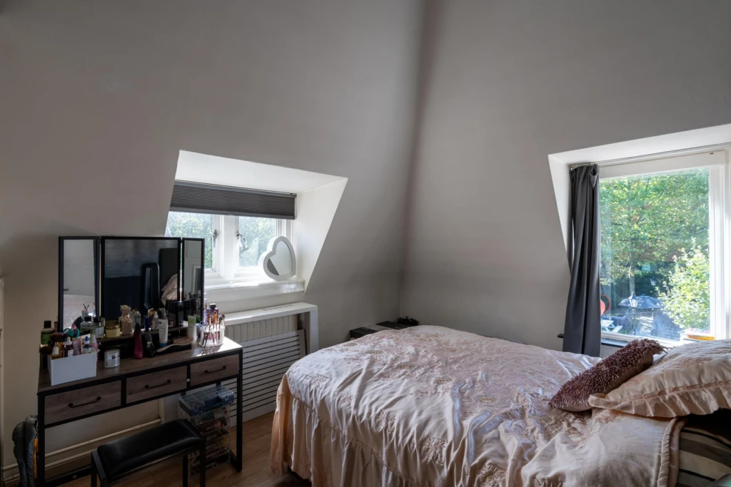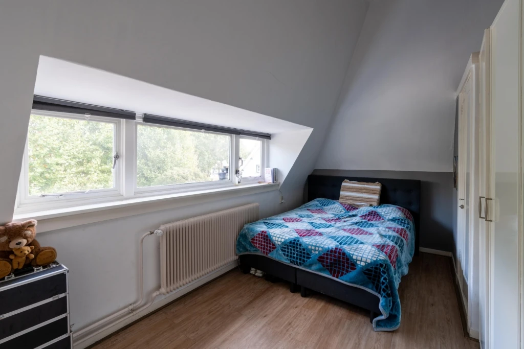 In het trappenhuis valt direct het karakteristieke kathedraalglas op. Op de eerste verdieping bevinden zich vier slaapkamers en een ruime badkamer. Meerdere kamers beschikken over vaste kasten. De slaapkamer aan de achterzijde heeft toegang tot een fraai balkon. Twee slaapkamers hebben een eigen wastafel, passend bij de stijl van het bouwjaar. De royale badkamer is modern uitgevoerd in lichte kleurstellingen en compleet ingericht met een ligbad, wandcloset, twee vaste wastafels, een douche en een designradiator.