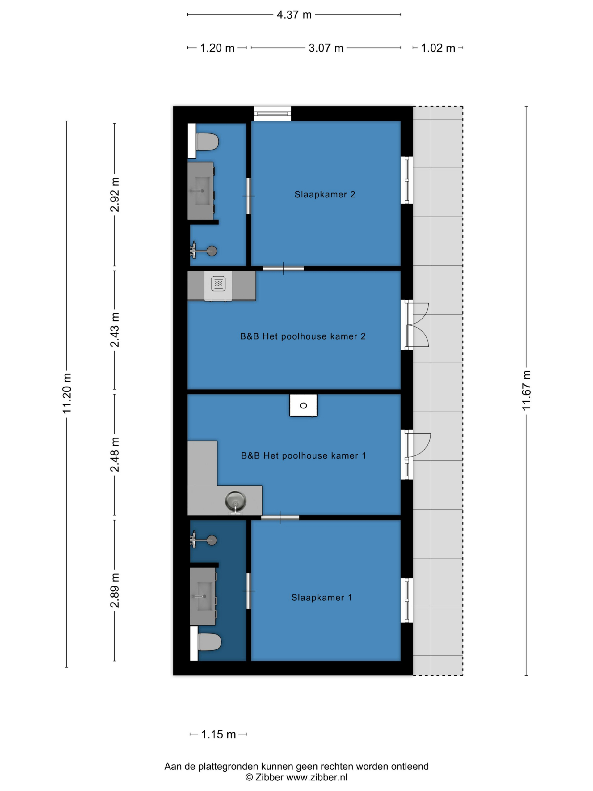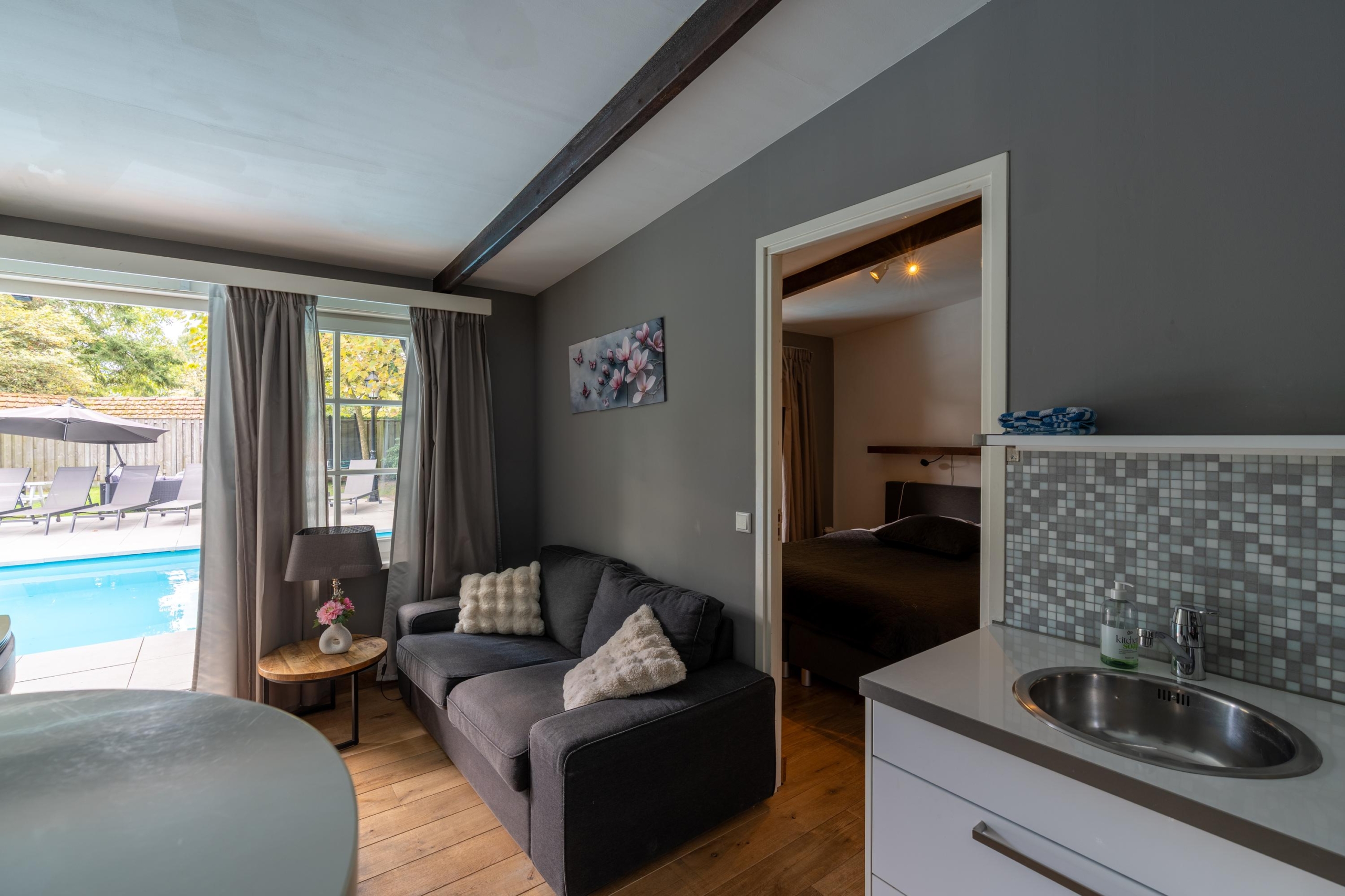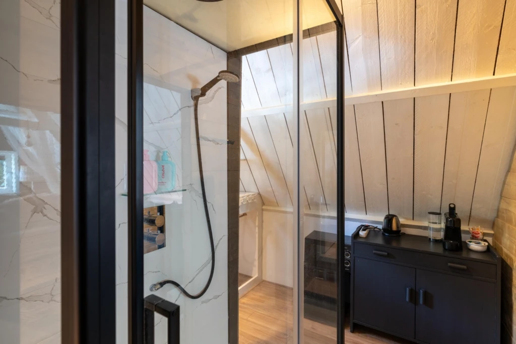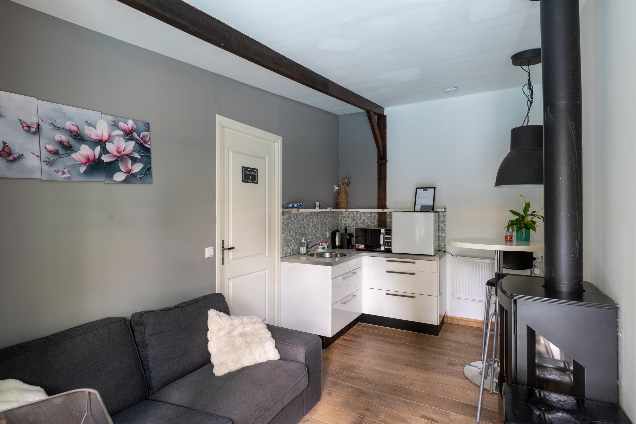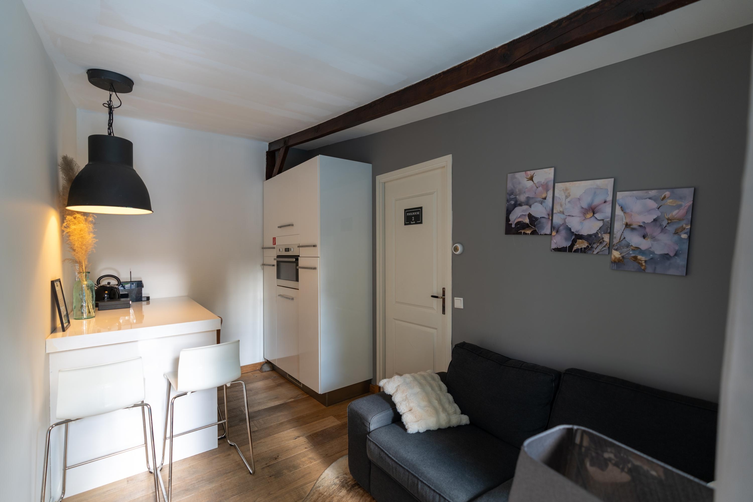 Het Poolhouse heeft twee B&B-kamers geschikt voor 2 personen, met een eigen privébadkamer en pantry. De moderne en geheel betegelde badkamers beschikken ieder over een inloopdouche, badkamermeubel, wandcloset en designradiator.