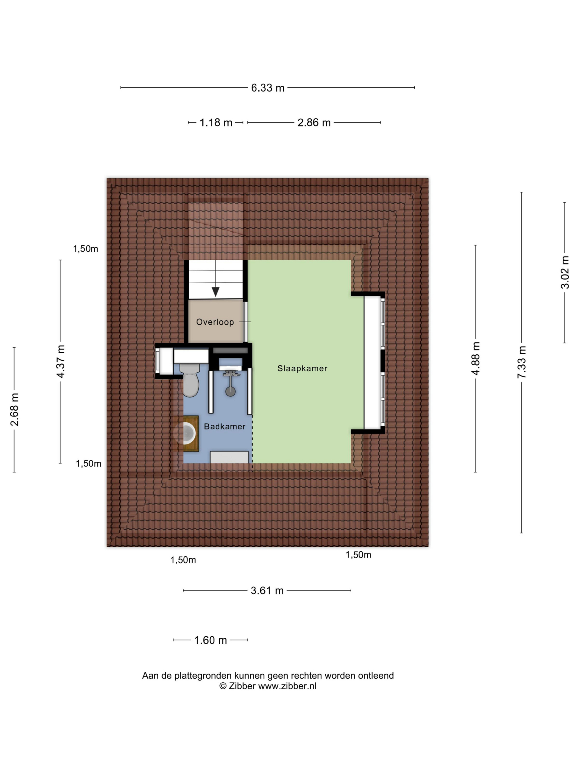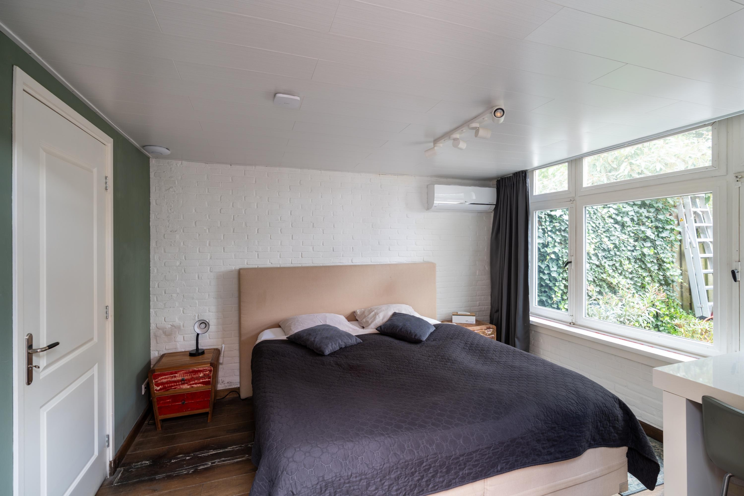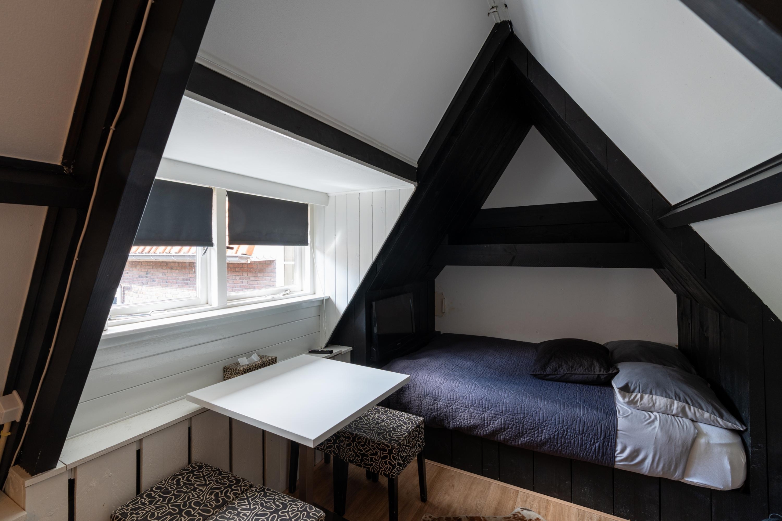 Via het trappenhuis is de tweede verdieping bereikbaar. Deze etage bestaat uit één slaapkamer met badkamer en suite. De ruimte is sfeervol en geniet van veel lichtinval. De badkamer en suite is uitgerust met een toilet, regendouche en een badkamermeubel met waskom.