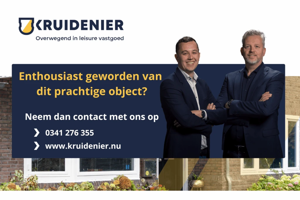 Deze informatie is geheel vrijblijvend, uitsluitend bestemd voor geadresseerde en niet bedoeld als een aanbod. Ten aanzien van de juistheid kan door Kruidenier Recreatie Bedrijfsmakelaardij B.V. geen aansprakelijkheid worden aanvaard, noch kan aan de vermelde informatie enig recht worden ontleend. Alle opgegeven aantallen, maten en oppervlakten zijn indicatief.