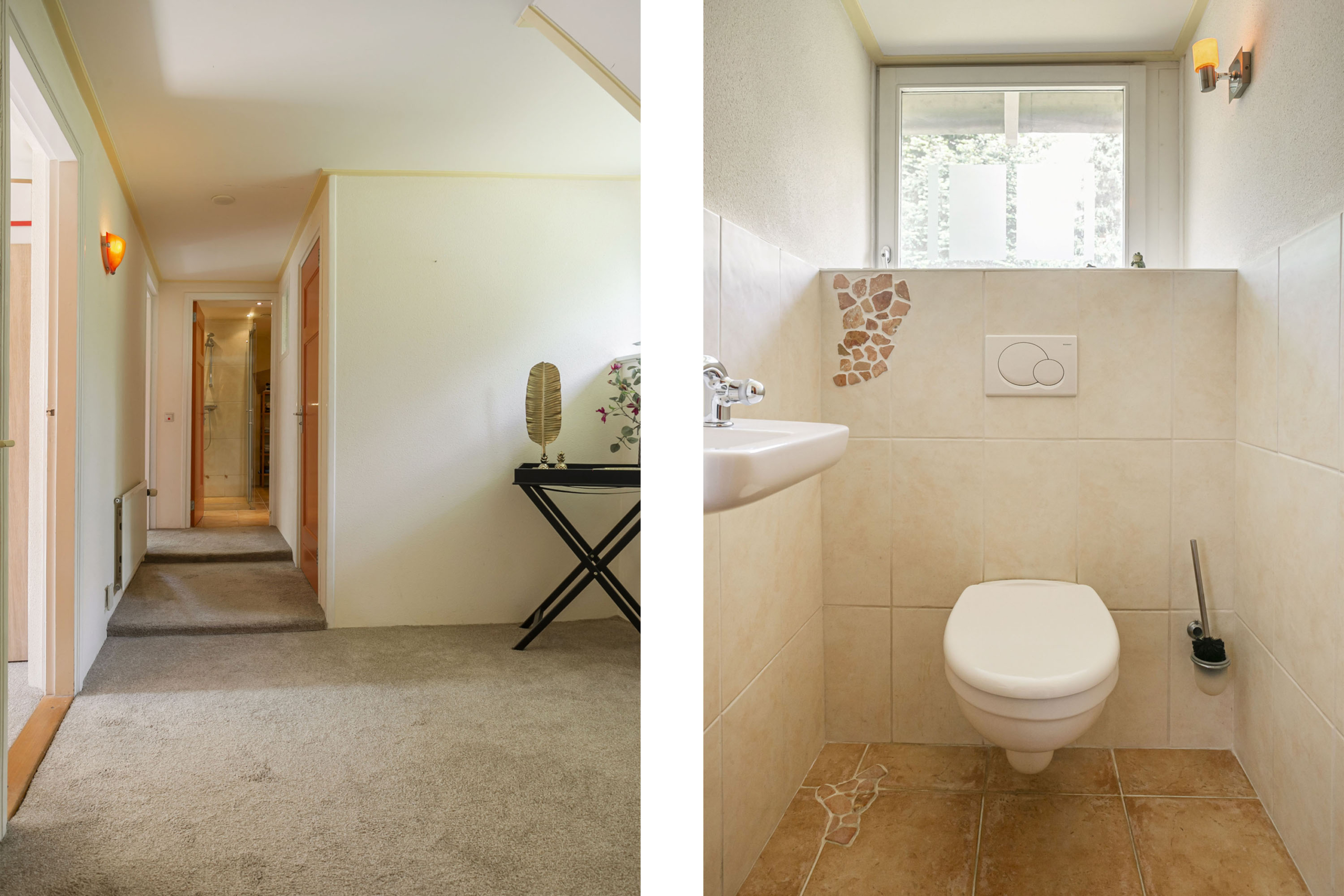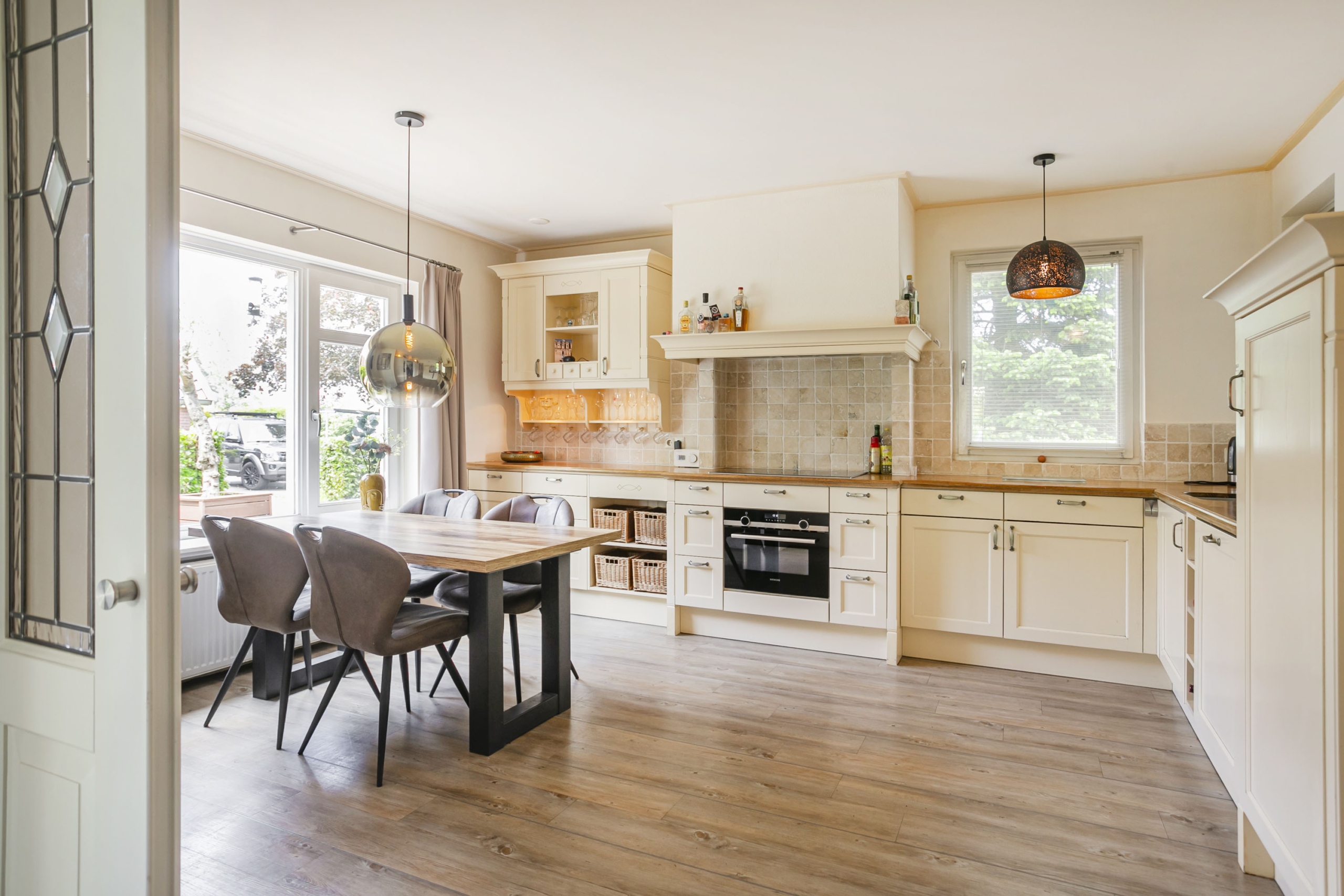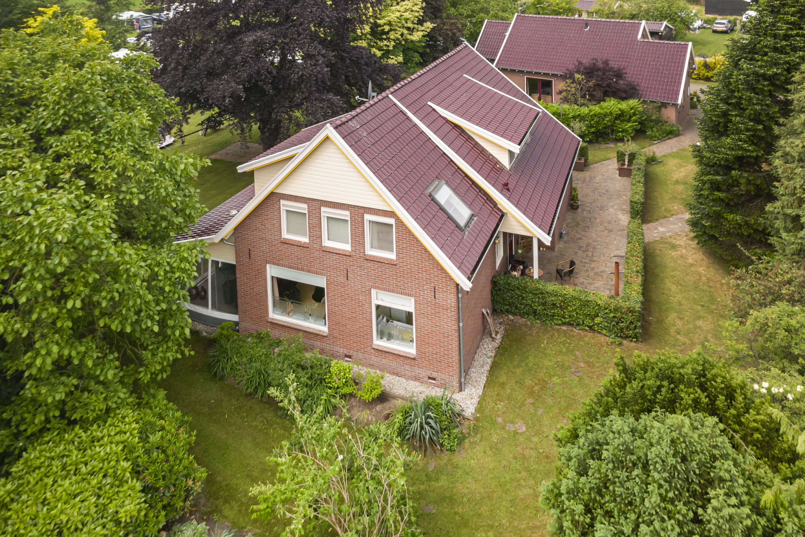 De vrijstaande woning is gelegen aan de doorgaande 60 km weg. De woning is oorspronkelijk gebouwd in 1955 en in 2007 aan de achterzijde uitgebouwd. Het gebouw is traditioneel gebouwd, opgetrokken uit steen, en de topgevels zijn voorzien van red cedar houten gevelbekleding. Het dak is gedekt met geglazuurde dakpannen, die in 2007 zijn vervangen tijdens de uitbouw van de woning. De woning is volledig geïsoleerd. Diverse ruimten beschikken over vloerverwarming en een stofzuigsysteem. De woning heeft een oppervlakte van 179 m² en heeft een eigen ingang en een privé tuin.