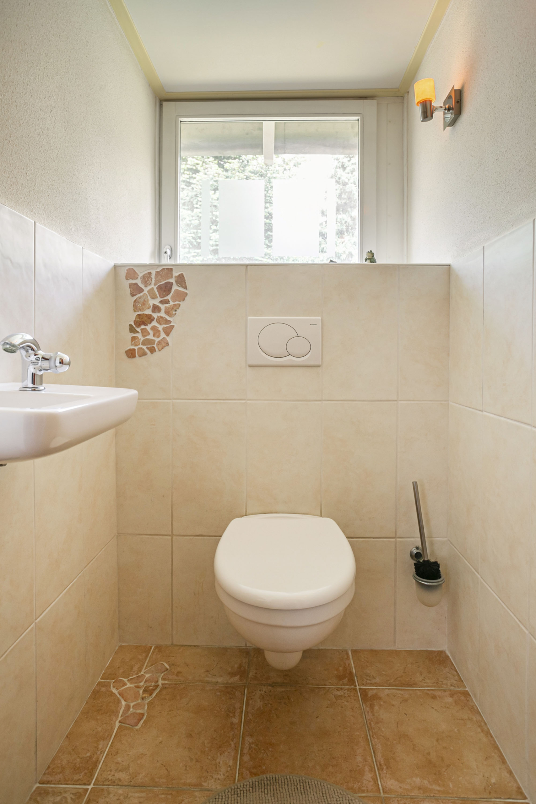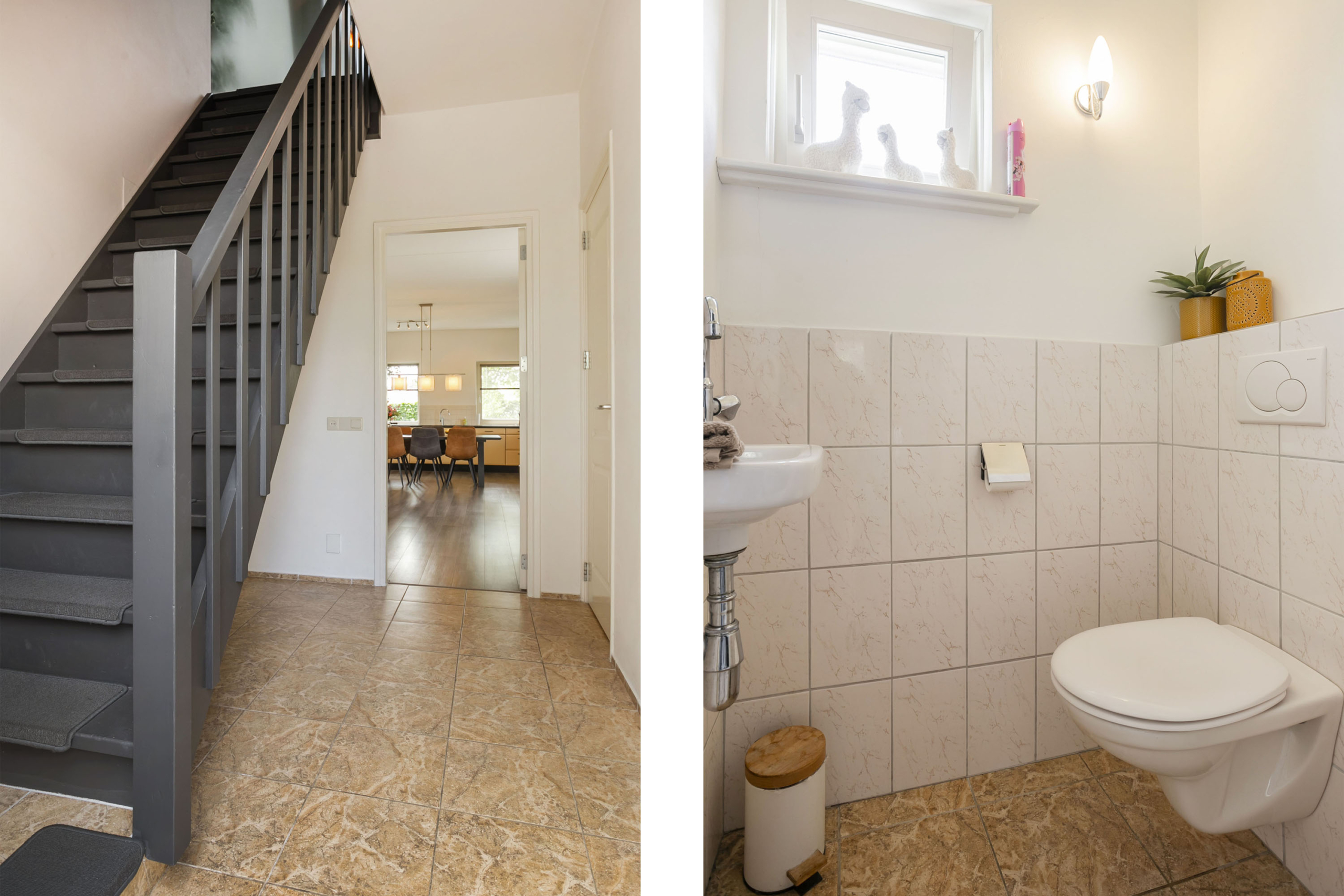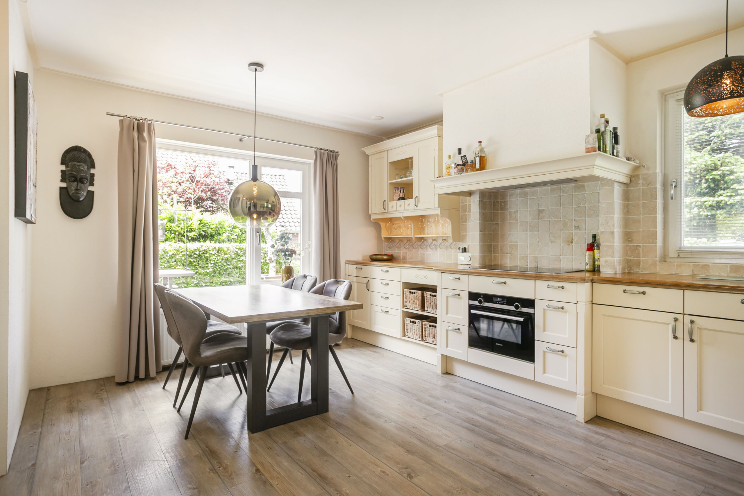 De vrijstaande woning is gelegen aan de doorgaande 60 km weg. De woning is oorspronkelijk gebouwd in 1955 en in 2007 aan de achterzijde uitgebouwd. Het gebouw is traditioneel gebouwd, opgetrokken uit steen, en de topgevels zijn voorzien van red cedar houten gevelbekleding. Het dak is gedekt met geglazuurde dakpannen, die in 2007 zijn vervangen tijdens de uitbouw van de woning. De woning is volledig geïsoleerd. Diverse ruimten beschikken over vloerverwarming en een stofzuigsysteem. De woning heeft een oppervlakte van 179 m² en heeft een eigen ingang en een privé tuin.